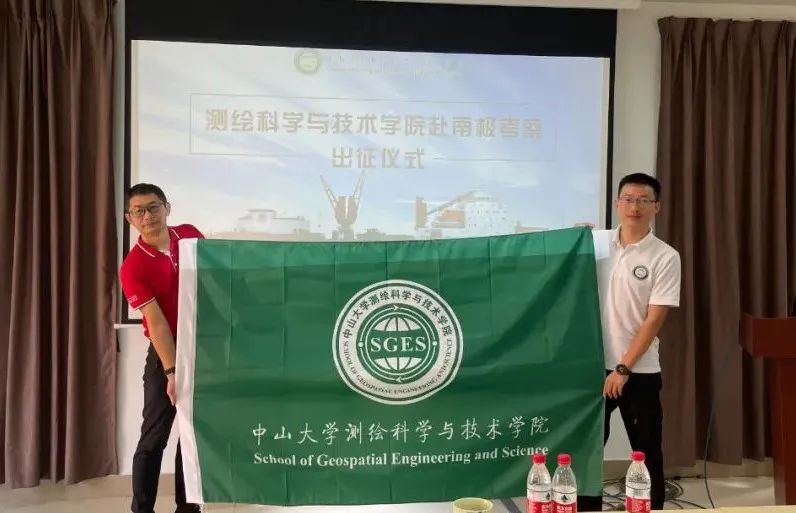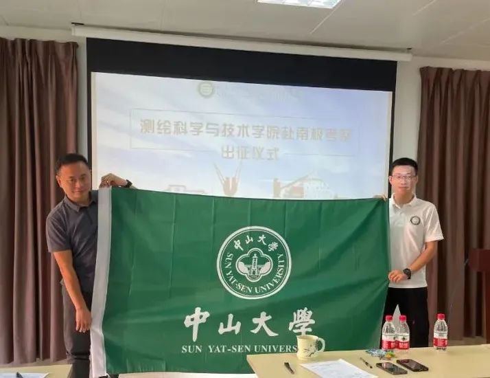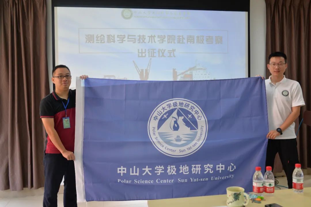 程晓书记、院长,许粤副书记、陈卓奇副院长将校旗、院旗、极地研究中心旗作为出征纪念授予郑雷老师,祝愿他不负嘱托,顺利完成任务。
