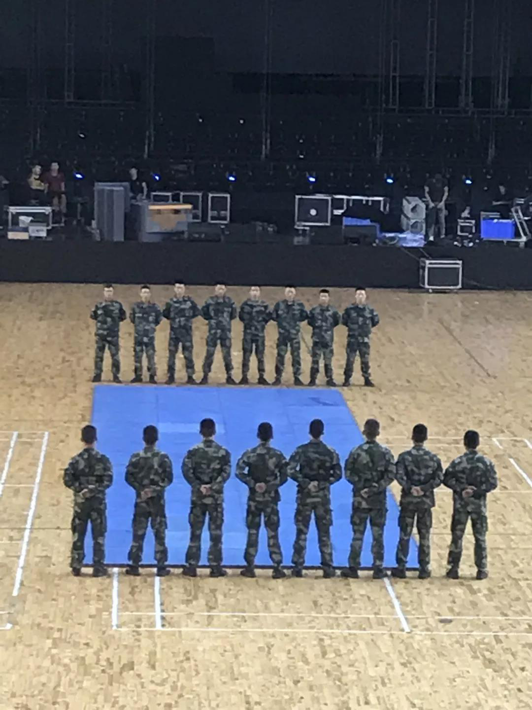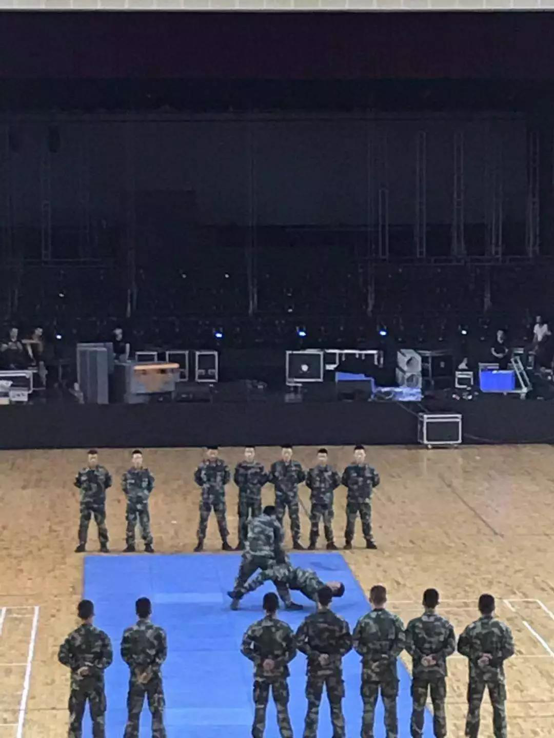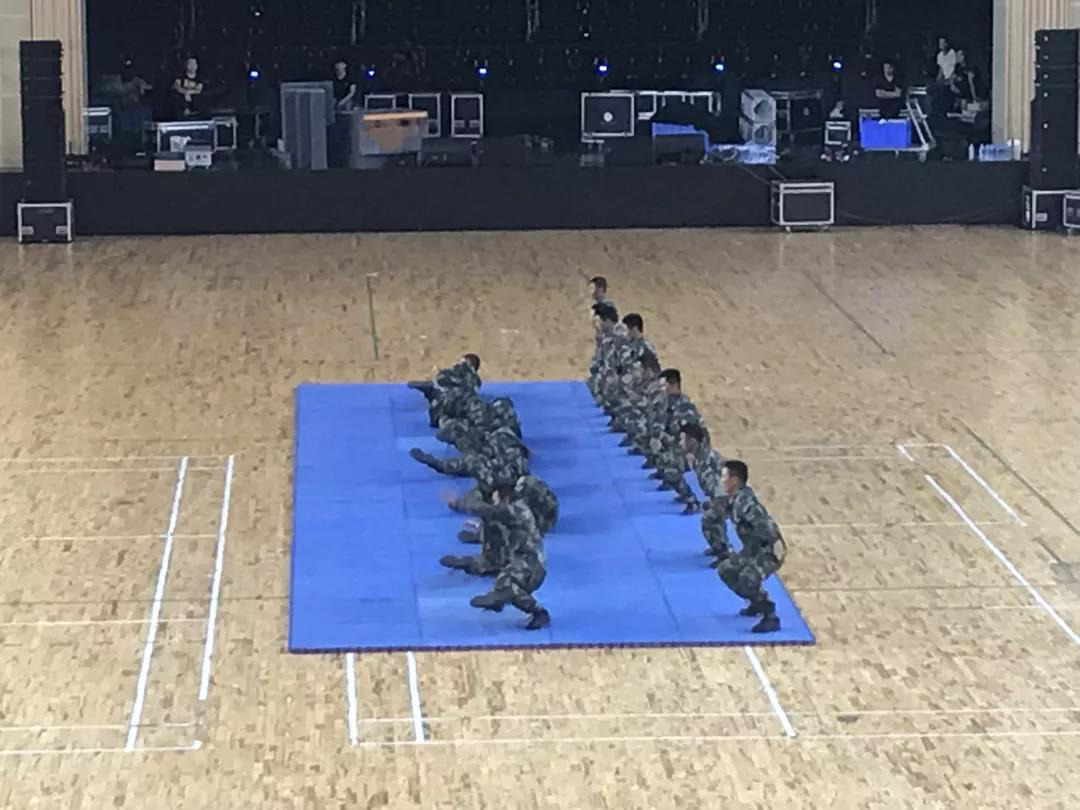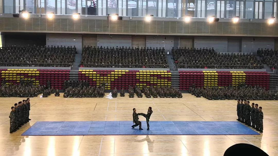 同学们的展示就此暂时告一段落,接下来,我们的教官们为大家带来了一段霸气侧漏的动作展示。他们刚健有力的步伐、干净利落的动作展示引得同学们惊叫连连。他们用这次展示,为我们展现了他们长期训练的成果,用行动诠释了什么是祖国的卫士。