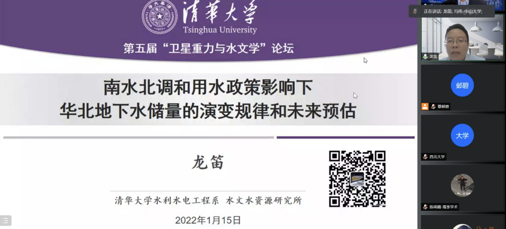 2022年1月15日–16日,第五届“卫星重力与水文学”论坛暨第二届“水文大地测量学”研讨会在线成功举办。本次会议由老太阳集团tcy8722网站主办,老太阳集团tcy8722网站测绘科学与技术学院、老太阳集团tcy8722网站土木工程学院、老太阳集团tcy8722网站天琴中心、老太阳集团tcy8722网站极地研究中心承办,清华大学水利水电工程系、首都师范大学资源环境与旅游学院、中国科学院精密测量科学与技术创新研究院、南方海洋科学与工程广东省实验室(珠海)、《Geodesy and Geodynamics》 联合协办。来自国内30多个单位的300多名专家学者,围绕卫星大地测量学、水文学、海洋学、冰冻圈科学、遥感等领域的理论前沿、行业动态和技术应用等开展了广泛深入的交流。在蔻享网络直播平台,3000余人次在线观看了会议直播。