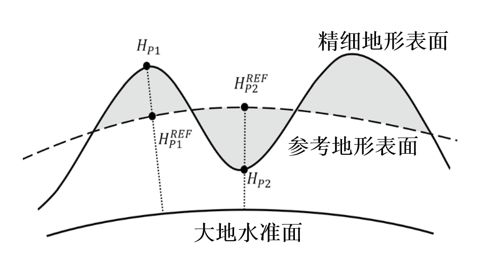 随着遥感与摄影测量技术的发展,高分辨率的地形模型为精细静态重力场构建提供了新的契机。基于残差地形模型技术,利用地形滤波获得地形的高频信息,再通过正演理论和方法解算高频重力场信号,被广泛应用于超高阶重力场建模、区域重力场精化、重力延拓以及地球物理反演的研究,是当前国内外精细地球重力场的前沿研究热点之一。在残差地形模型技术中,当计算点位于平滑面以下时,需要做调和改正,目前国内外科学家针对重力异常的调和改正开展了广泛的研究,但是忽略了对大地水准面的调和改正,这在大地水准面精化过程中将引入较大的误差。