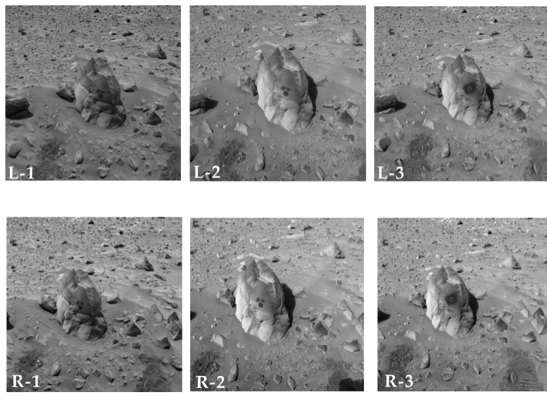 勇气号巡视器导航相机立体影像(L为左相机影像、R为右相机影像)