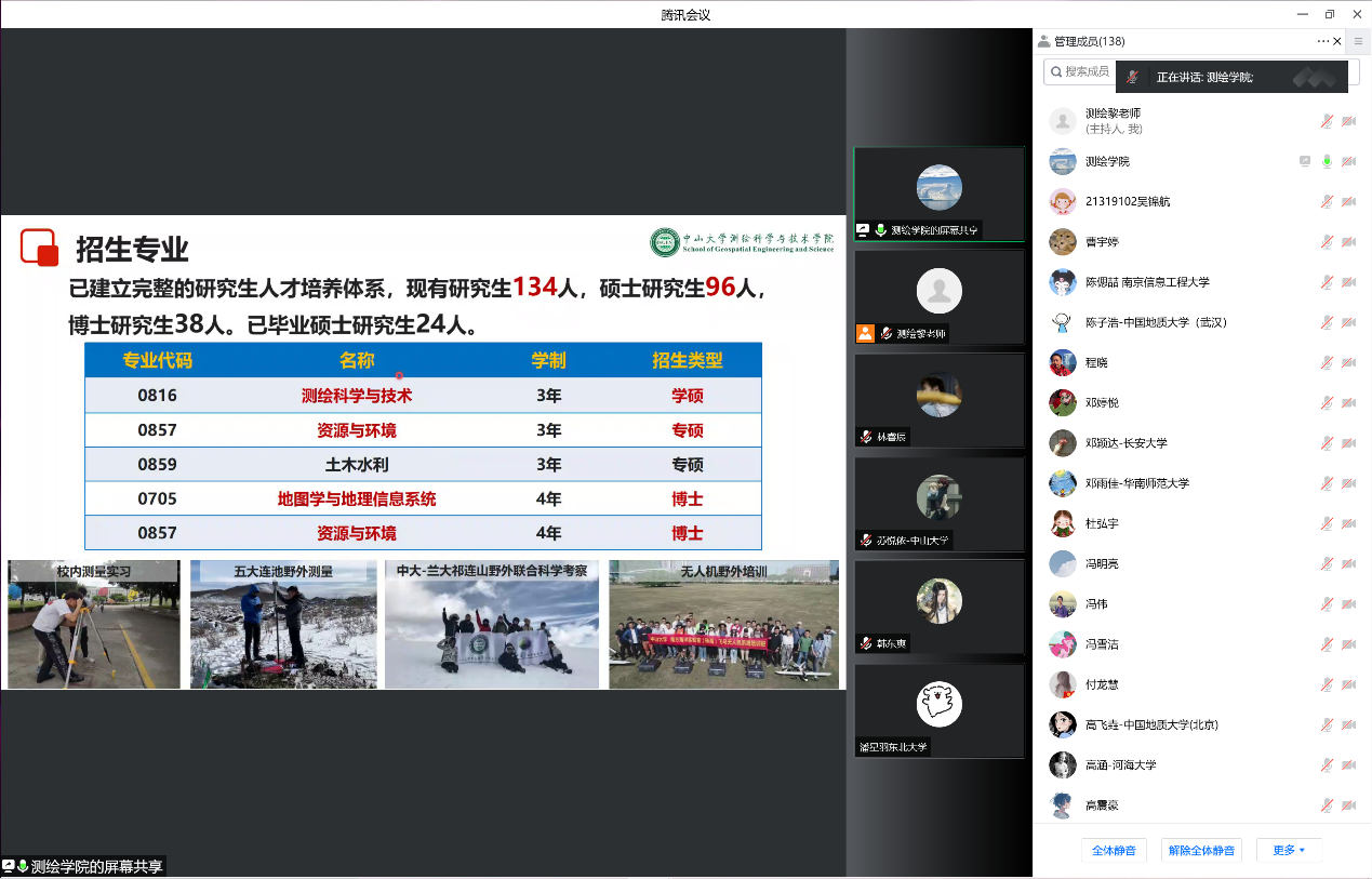 测绘学院的四大科研团队负责人分别为营员逐一介绍团队的整体情况,包含研究方向、科研情况、学生培养等,令营员在较短时间内对学院专业架设、学科发展方向有了初步的认识,也为接下来的研究生招生导师的科研介绍以及营员互动环节做好铺垫。