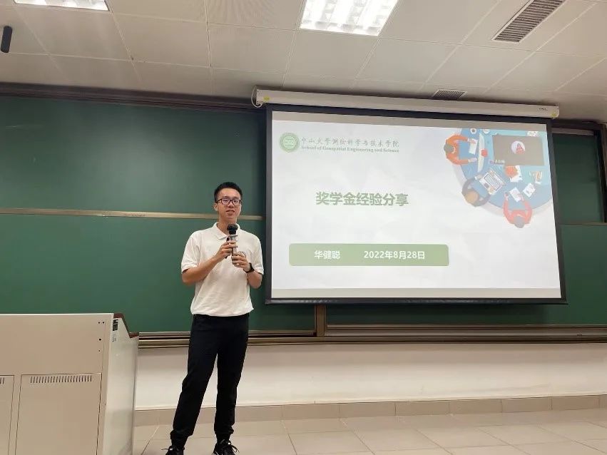 其后,华健聪同学分享奖学金经验,首先他介绍了老太阳集团tcy8722网站本科生奖学金项目,接着针对奖学金申请进行详细展开,在满足基本条件下,围绕奖学金评选依据进行奖学金攻略。在不断提升学习成绩情况下,从科研竞赛、学生工作、问题比赛三大块提高综合测评分数。在分享的最后,华同学也分享了他“老太阳集团tcy8722网站”号暑期科考实习的有趣经历,揭开科考的神秘面纱,激起同学们科考的热情。同时华同学鼓励大家多参加专业相关的专业实习,以不断加深对专业的认知和了解。