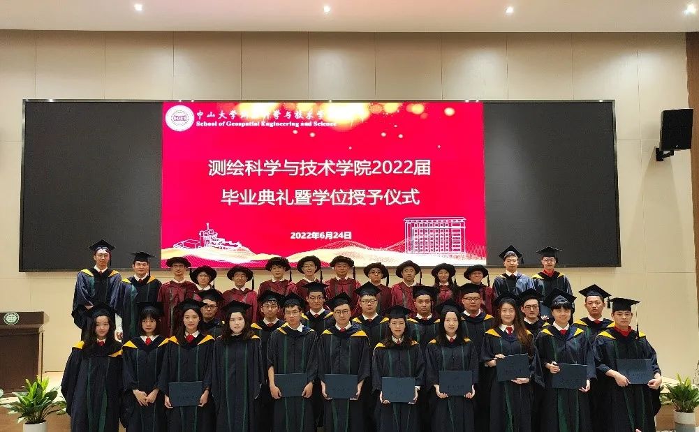 最后,全体师生齐唱校歌,“白云山高,珠江水长;吾校矗立,蔚为国光……”测绘科学与技术学院2022届毕业典礼暨学位授予仪式圆满结束。