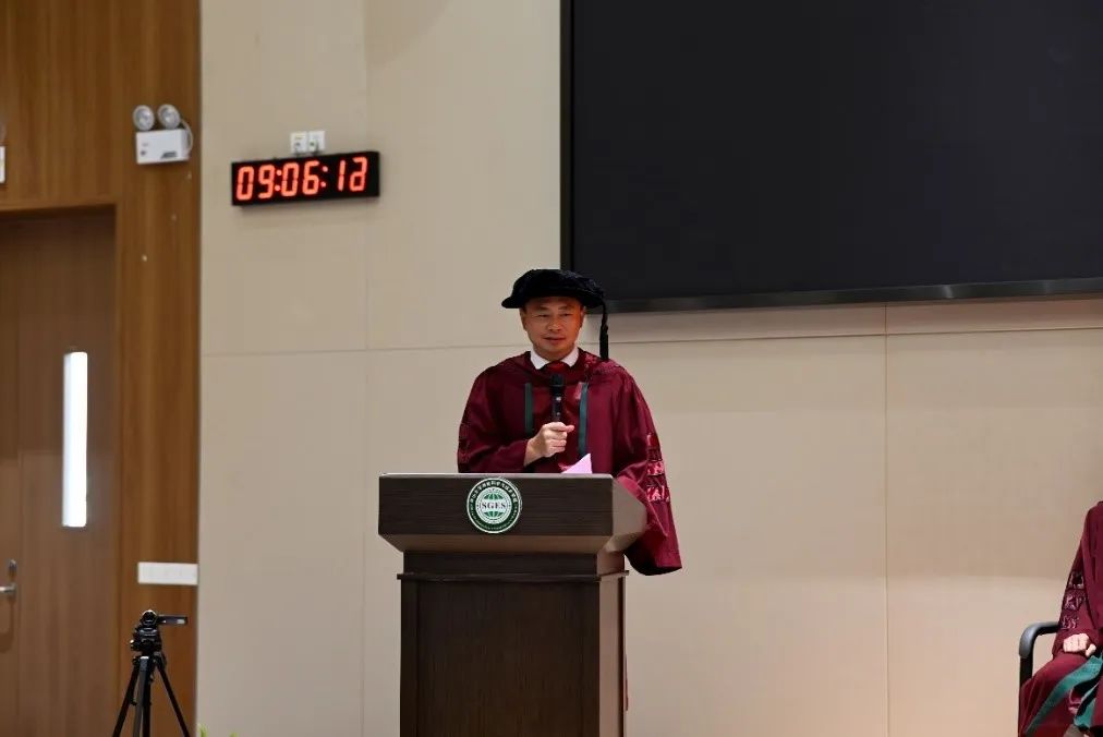 国家科技部原部长、中国科学院院士徐冠华以线上连线的方式向学院首届毕业生表示热烈祝贺,对老师们的辛勤付出和精心培育致以崇高敬意。他希望同学们能心怀为国家强盛而奋斗的人生信念,无愧于自己,无愧于国家。他还叮嘱同学们,狭路相逢勇者胜,无论从事哪份职业,取得成绩时,不要自满;遇到挫折,不要气馁。最后,徐冠华院士祝愿同学们前程似锦,笑傲江湖,用聪明才智打造属于自己的王者荣耀!
