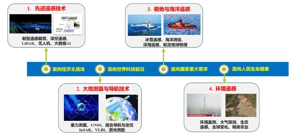 ▲测绘科学与技术学院四大研究方向