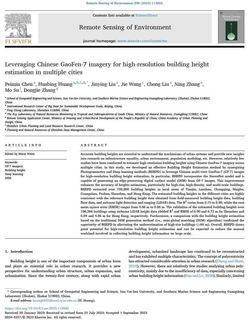 科研动态|环境遥感团队黄华兵教授等在高分辨率城市建筑高度制图研究中取得新进展