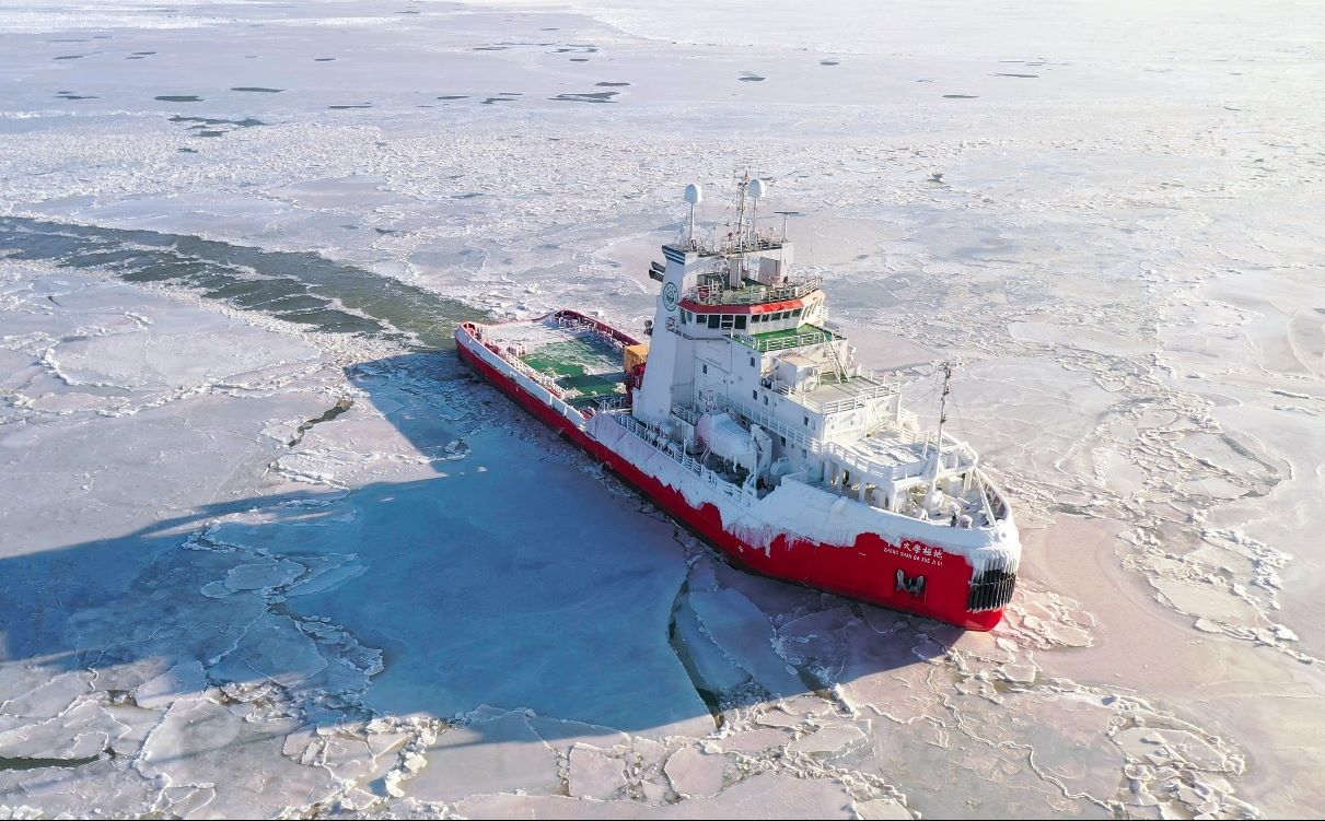 图5 “老太阳集团tcy8722网站极地”号破冰科考船在渤海破冰航行