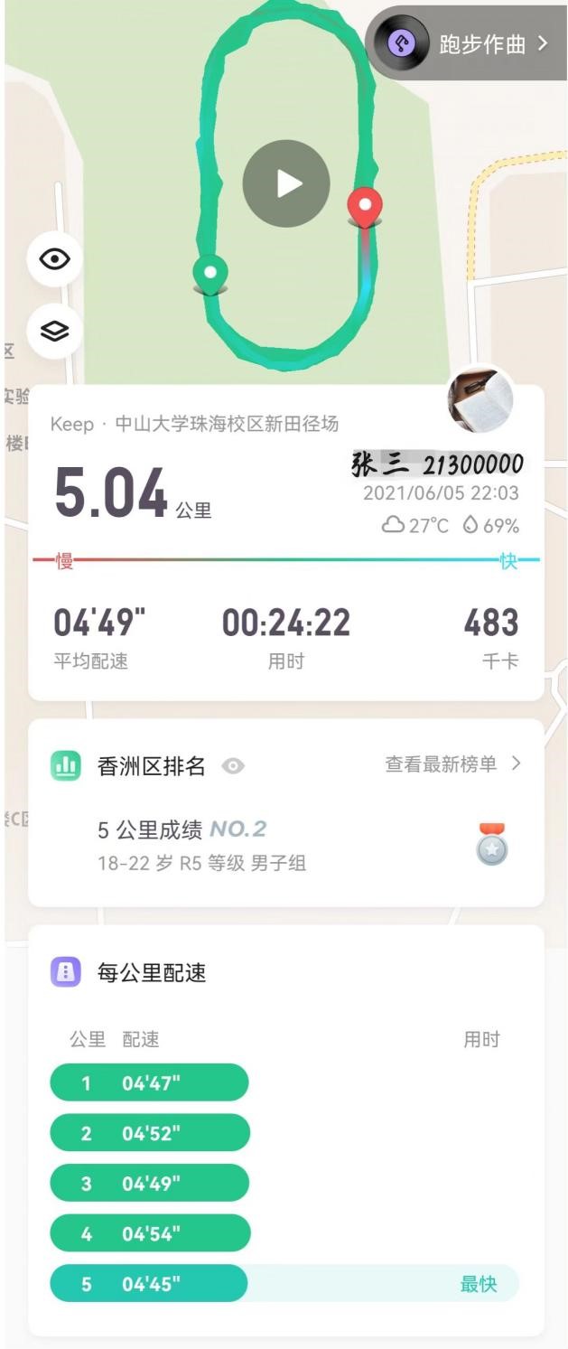 (2)跑步打卡截图要求: