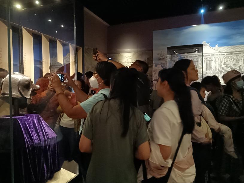 从珠海校区乘车出发,同学们抵达珠海博物馆。有幸恰逢十二铜首展出之际,同学们得以近距离观察到铜首的真迹。在专业讲解员的引导、讲解下,同学们不仅对十二铜首的百年流失史有了更深入的了解,更对馆藏文物背后蕴含的文化价值和历史积淀有了更加深刻的体悟,潜移默化中提升了文物保护的自觉,增强了文化自信的意识。