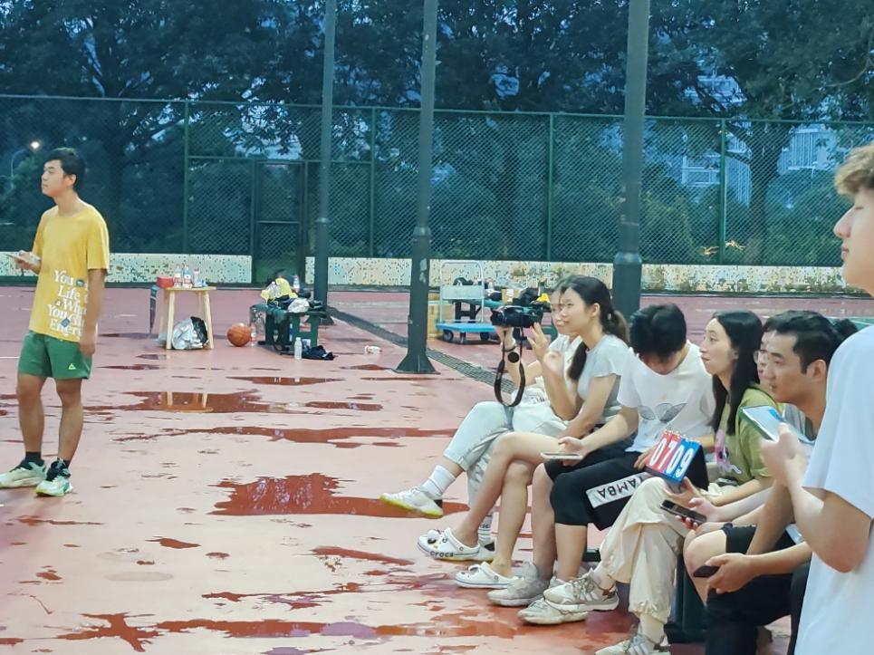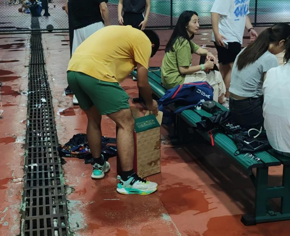 赛程已然过半,不知不觉间夜色降临,球场打开了暖黄色的灯光,我们的选手也因为体力消耗开始了中场休息。现场的工作人员暖心的为选手们送上了饮品。
