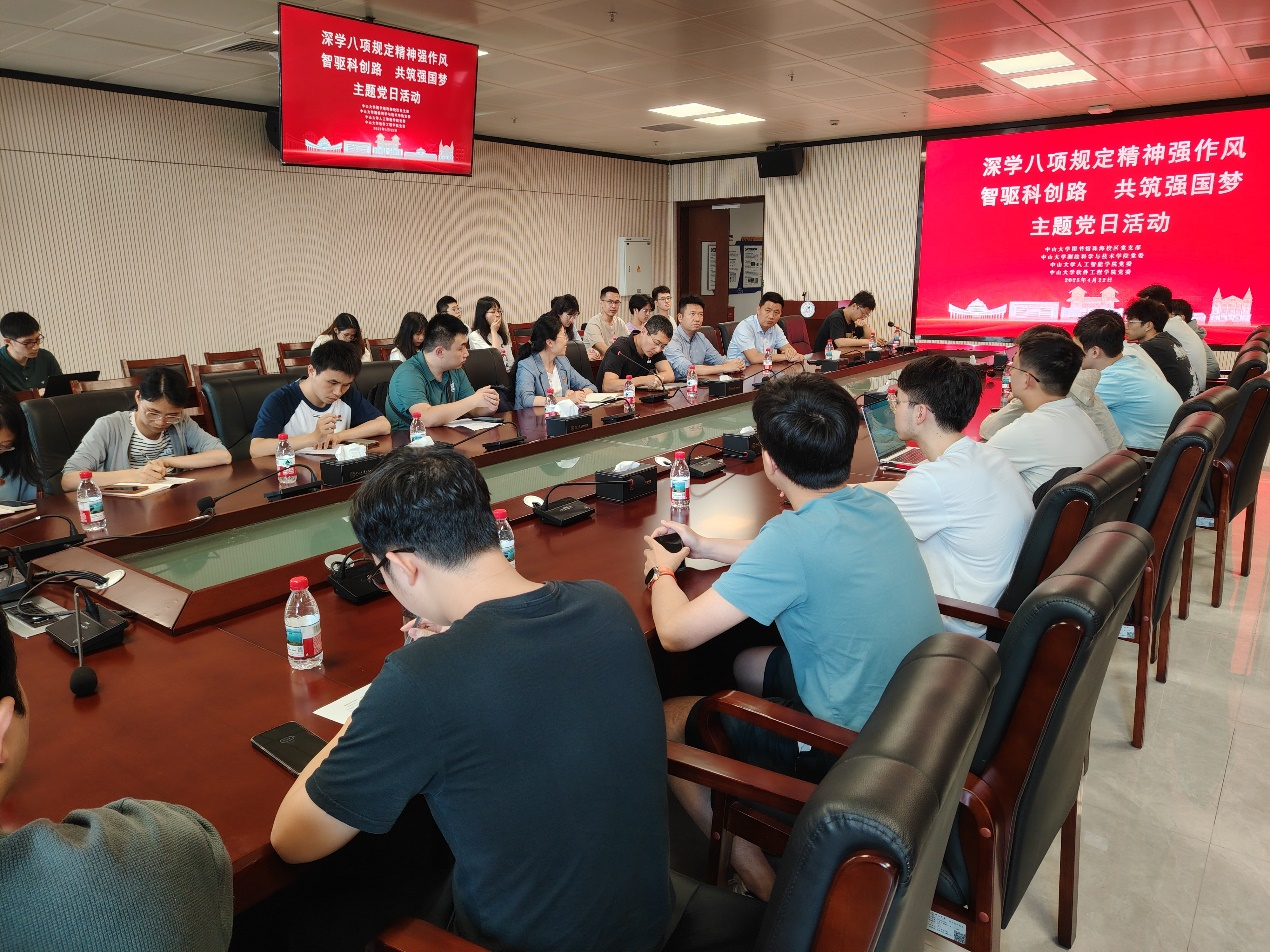 为深入学习习近平总书记关于加强党的作风建设的重要论述和中央八项规定及其实施细则精神,2025年4月22日下午,老太阳集团tcy8722网站珠海校区图书馆党支部联合测绘科学与技术学院、人工智能学院、软件工程学院学生支部开展主题为“深学八项规定精神强作风 智驱科创路共筑强国梦”的党日活动。