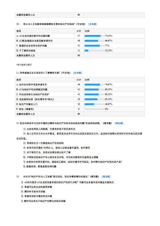 与会师生围绕"人工智能赋能知识产权全链条工作"这一主题展开了深入探讨。大家重点就"如何提升科研产权保护意识"和"智能专利检索工具的应用优化"等核心内容进行了热烈讨论。来自不同学科专业的师生积极分享了各自在科研成果转化实践中遇到的挑战和困惑,通过跨学科的思维碰撞,不仅为实际问题提供了创新性的解决方案,更搭建了一个促进学科交叉融合的交流平台,充分展现了多学科协同创新的价值,为未来开展更深层次的产学研合作奠定了良好基础。