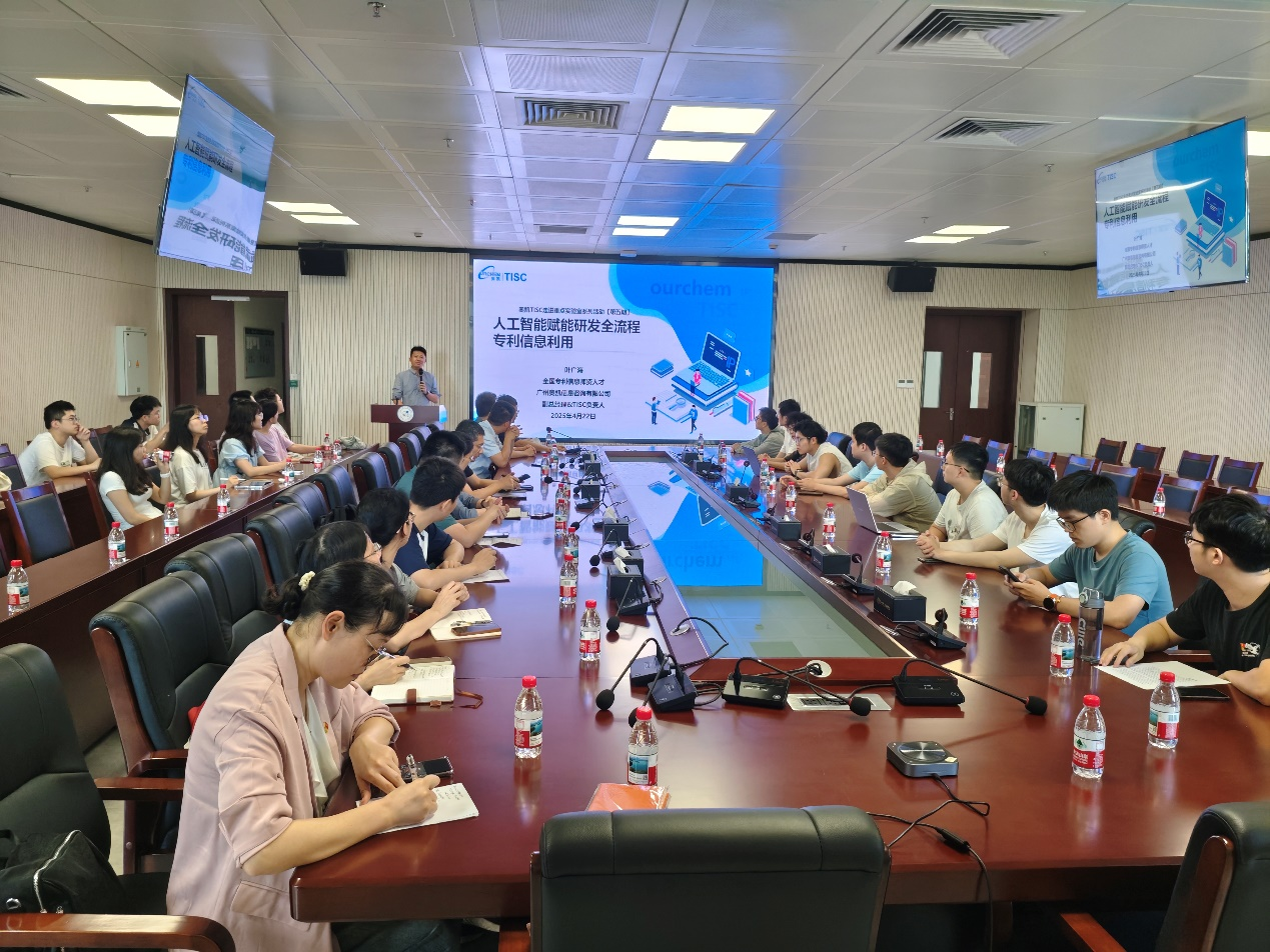 广州奥凯信息咨询有限公司副总经理叶广海为师生作《人工智能赋能研发全流程专利信息利用》专题报告。叶经理从知识产权价值实现、研发全流程的专利信息利用、知识产权与人工智能等方面展开报告,结合实际案例,深入浅出地介绍了知识产权相关理论知识,演示如何利用人工智能创新工具优化技术方案、提升专利文本质量、智能生成报告等,大大提升了师生在专利检索及分析方面的工作效率。