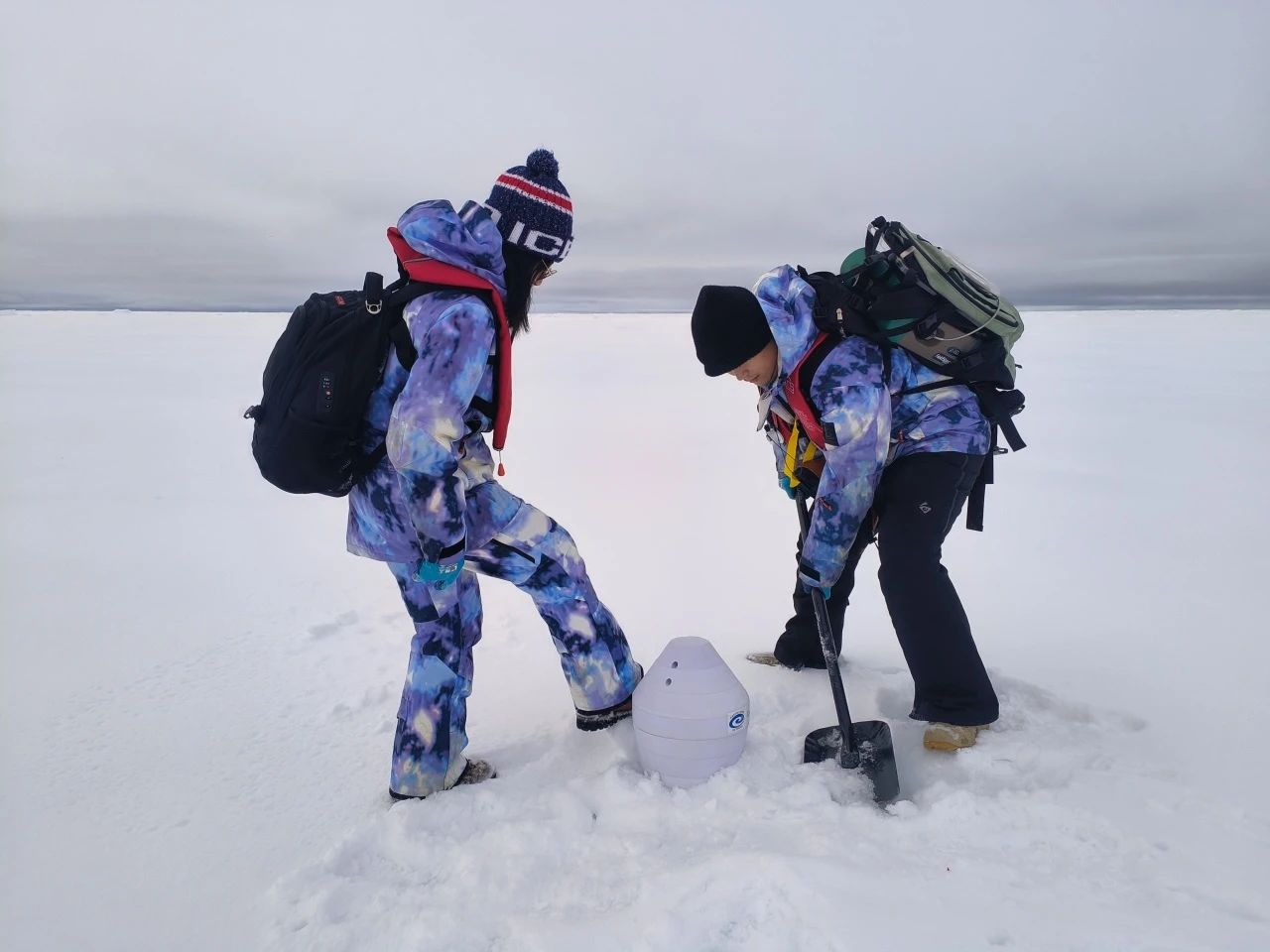 冰站上,采冰芯、观积雪、测冰厚、放气艇,他们的身影无处不在,在实践中学习新的知识和技能。大洋作业中,他们积极参与5型无人潜水器的海试和观测任务,通宵达旦,不辞辛劳。其中,他们深度参与了 “极蛙”双运动模式自主水下航行器的研发和海试工作,依托广东大学生科技创新培育专项资金(“攀登计划”专项资金)取得相关发明专利,并在北冰洋中对设备实物完成海试。从理论方案到实际操作,为我国极地自主观测装备的研发提供了宝贵经验。