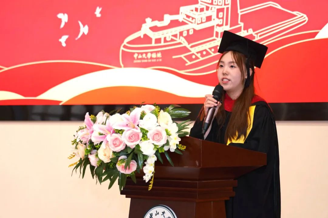 学院副院长黄华兵教授宣读孙中山先生毕业训词,全体毕业生认真聆听,并集体回应“谨遵教诲”。