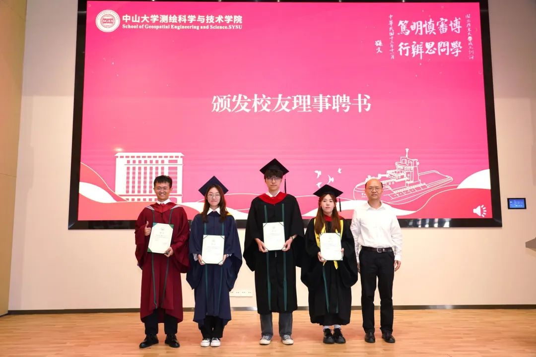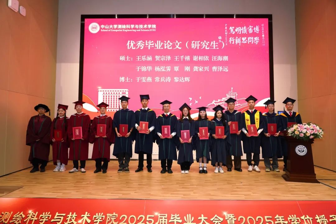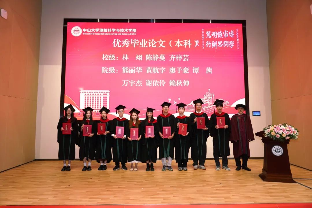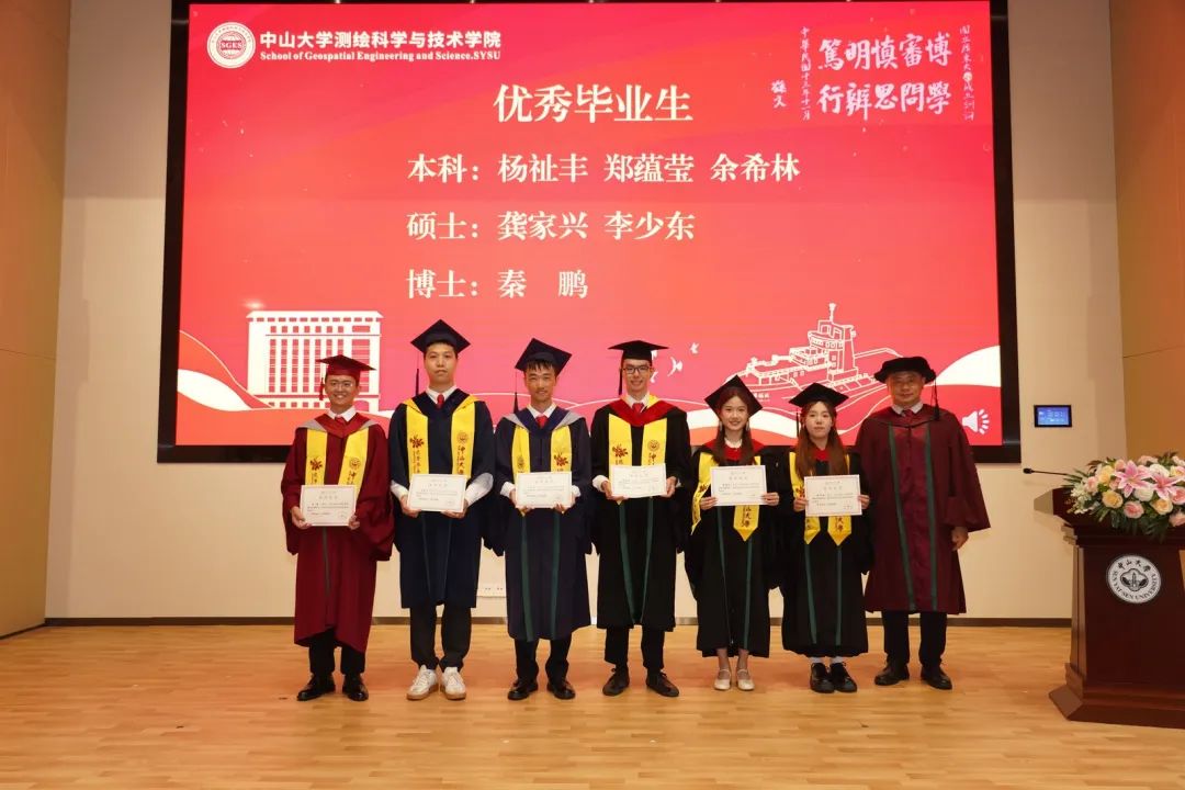 优秀博士毕业生秦鹏、优秀硕士毕业生李少东、优秀本科毕业生余希林在发言中感谢学校、学院以及老师们的培育支持,表示将秉承中大校训和测绘精神,以所学服务国家,实现人生价值,做出应有贡献。