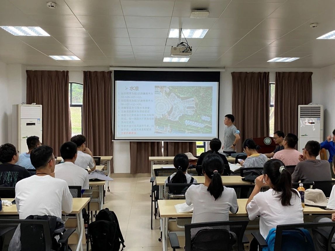在比赛开始前,竞赛总负责人李刚助理教授向参赛队伍介绍了比赛流程、比赛规则以及注意事项等。比赛分为水准测量和闭合图根导线测量两类,抽签决定每支队伍的比赛内容,各队伍需要在指定的时间内完成户外测量和内业平差工作,以“时间”和“精度”综合衡量每支队伍的成绩。