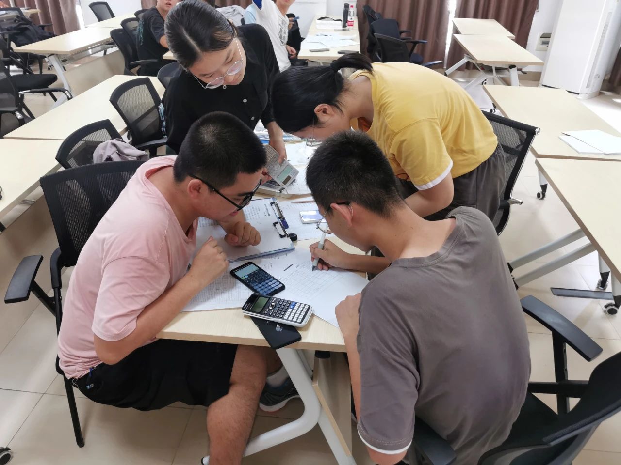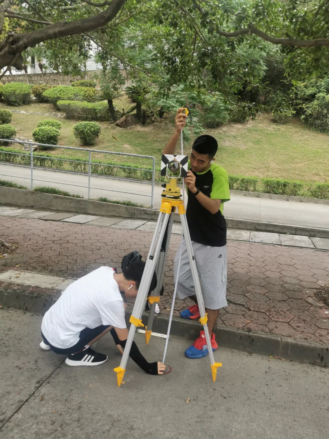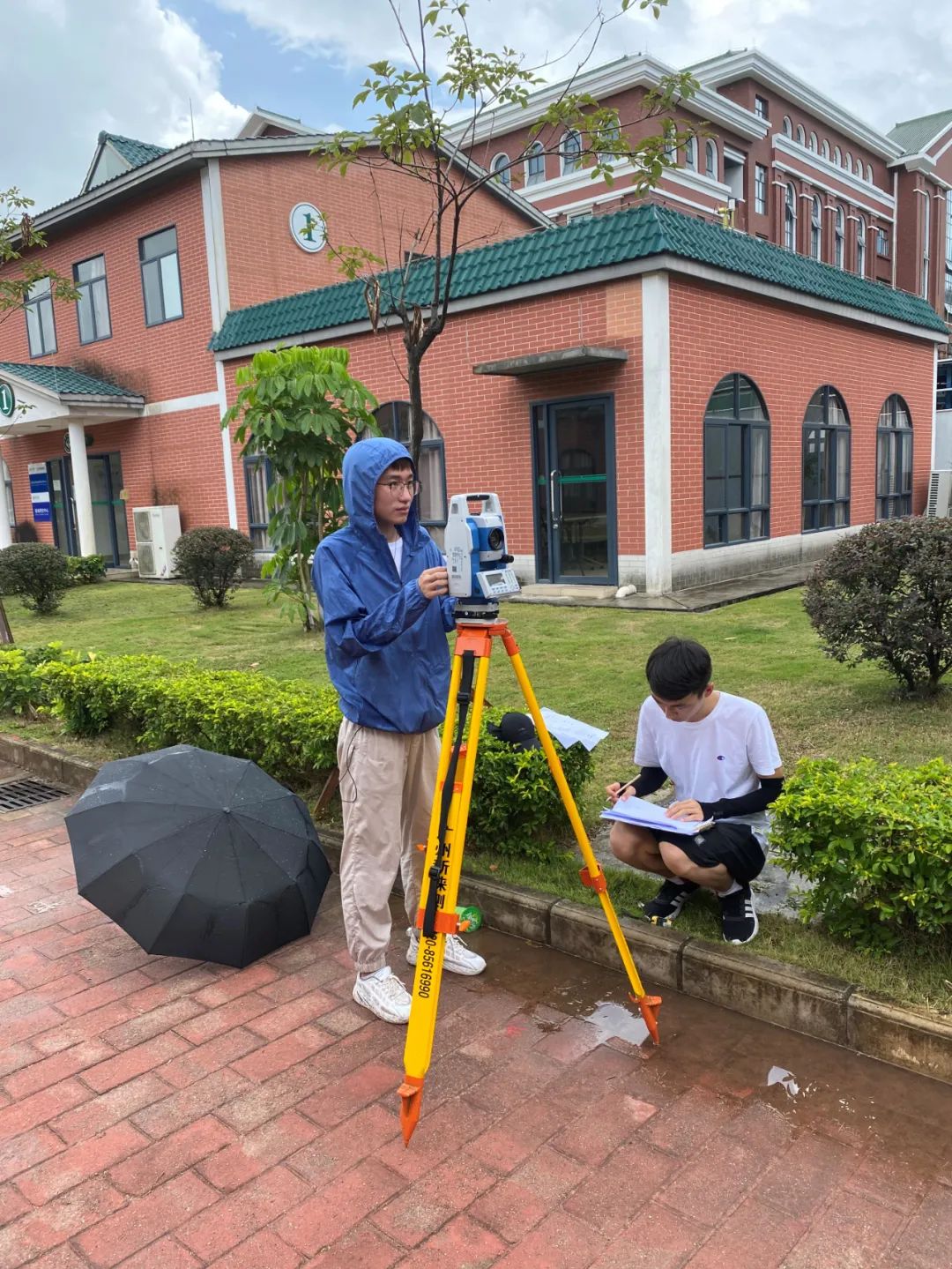 比赛过程中,炎热的太阳和闷热的骤雨交替变化,在这样恶劣的竞赛条件下,参赛选手们争分夺秒,默契配合,架设、观测、读数、记录、迁站以及测后的平差计算,所有的参赛队员都尽可能地做到迅速、精准。评委老师们依次巡查,不时为学生们送上冰凉的矿泉水和绿豆汤,陪伴在选手们的身边。