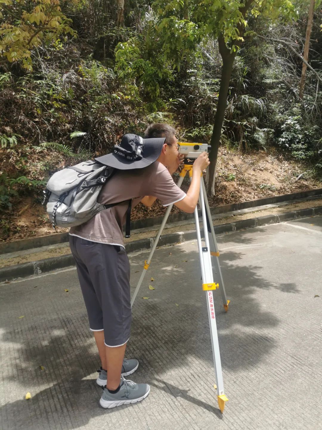 比赛正式开始后,来自2019级本科生的5组选手开始了测量仪器操作大赛。各队伍领取仪器后,沿各自的观测区域设置观测点开始测量。