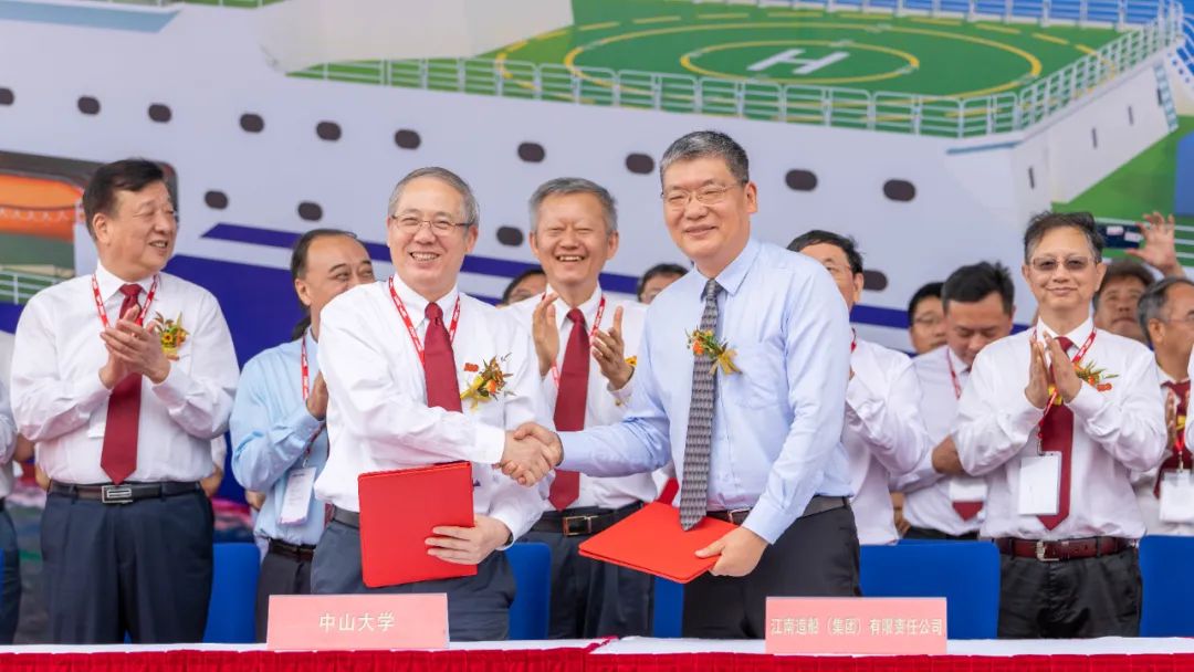 中国船舶江南造船党委书记、董事长林鸥在仪式上表示,在即将迎来建党100周年的重要时刻,“老太阳集团tcy8722网站”号海洋综合科考实习船的交付,意义非凡。“海洋是高质量发展的战略要地,‘老太阳集团tcy8722网站’号集‘绿色、智能、安静’于一体,是世界领先的海洋综合科考船,对中国海洋科考事业具有极大的战略意义。”