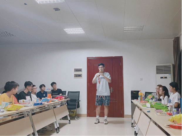 杨治斌同学的单口相声将整场的气氛推向高潮。表演结束后,邀请了两组同学参加了“谁是卧底”活动,共进行两轮,第一轮先由6名成员在主持人手中抽取代表自己身份的底牌,然后各自对自己的身份进行描述与辩解,通过几轮平民与卧底的互怼,最终卧底取得胜利。第二轮形式更为激烈,双方有来有回,孙光强同学带领卧底阵营最终赢得胜利。