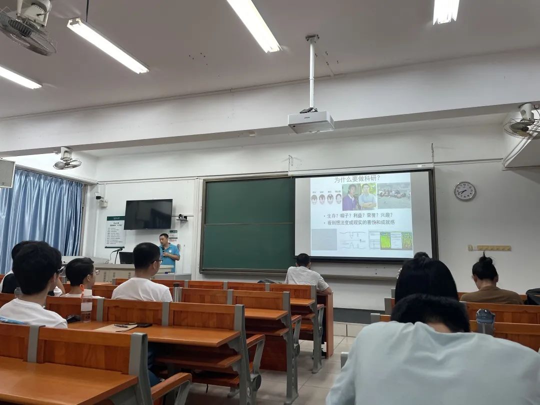 张吴明老师为研究生新生作科研经历分享。张老师从他的学生时代开始,逐步展开到他的科研历程,并分享了科研过程中的种种困难与克服困难后的的科研喜悦感。张老师对责任、兴趣、习惯这三种科研素质进行了深入阐释,希望大家能独立思考并做到知行合一,并强调了学术规范的重要性。最后,张老师祝愿各位研究生新生能顺利完成科研工作并从中得到乐趣。