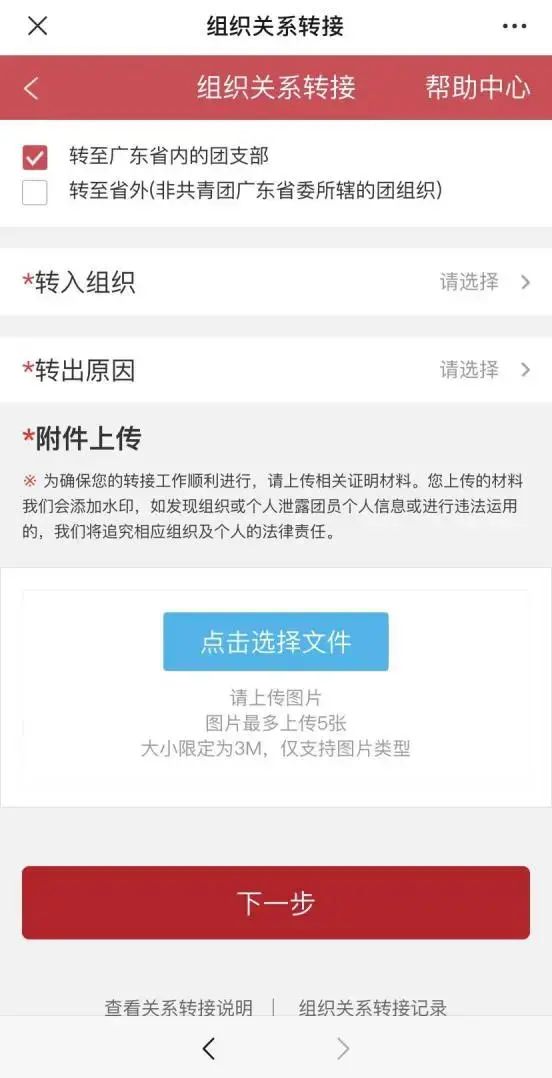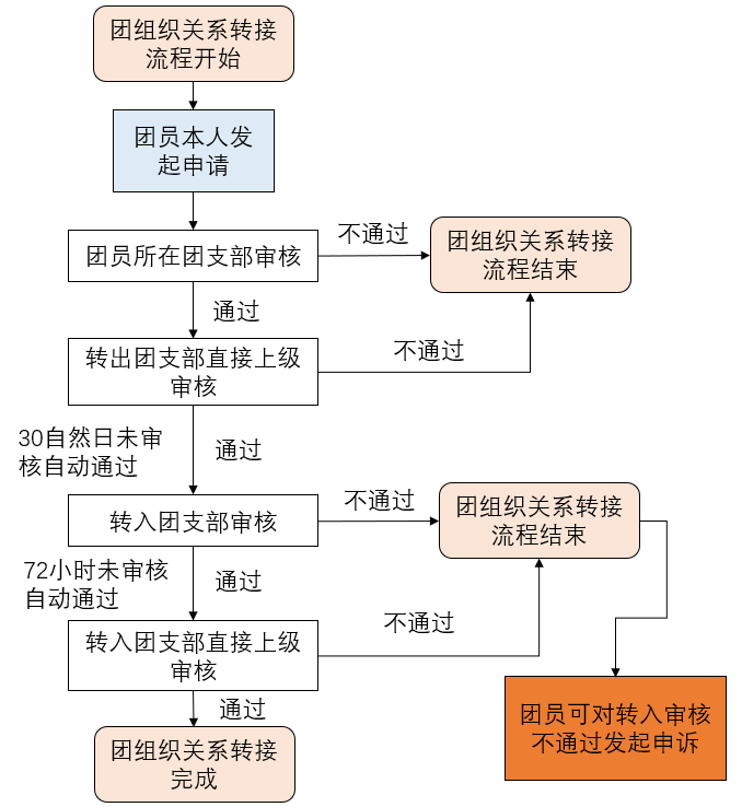 关注“广东共青团”微信公众号,点击菜单栏“智慧团建”->“团员报到”,进入首页并发起组织关系转接的申请,转接申请经转出、转入团组织审核通过后,即查看转接审核状态。