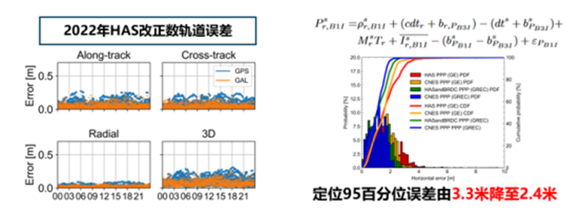 9. 星基导航增强技术方面,利用欧洲定轨中心(CODE)提供的精密产品,对Galileo高精度服务(HAS)轨道与卫星钟差改正在空间信号测距误差(SISRE)方面进行了系统评估,基于IGS测站数据的验证结果显示其已达到服务等级1(SL1)的性能要求。在此基础上,设计了一种基于历史训练数据的卫星钟差改正策略,并结合two-step双差预处理算法,有效降低了GPS与Galileo的SISRE,分别实现了38.6%和58.9%的性能提升。此外,为满足智能手机在复杂环境下对多星座、多观测值融合定位的需求,进一步研发了融合HAS改正数与广播星历信息的定位方法(HASandBRDC算法),可将智能手机定位95%分位误差由3.3米显著降低至2.4米,验证了星基增强技术在低成本终端高精度定位应用中的巨大潜力。